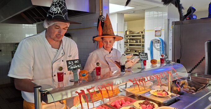 Par VERONIQUE BESSON, publié le jeudi 16 octobre 2025 16:40 - Mis à jour le jeudi 16 octobre 2025 16:46Merci à toute l'équipe de cuisine qui a animé un repas d’Halloween haut en couleur : menu spécial, déguisements, jeux de lumières et bruitages. Élèves et adultes ont apprécié. -